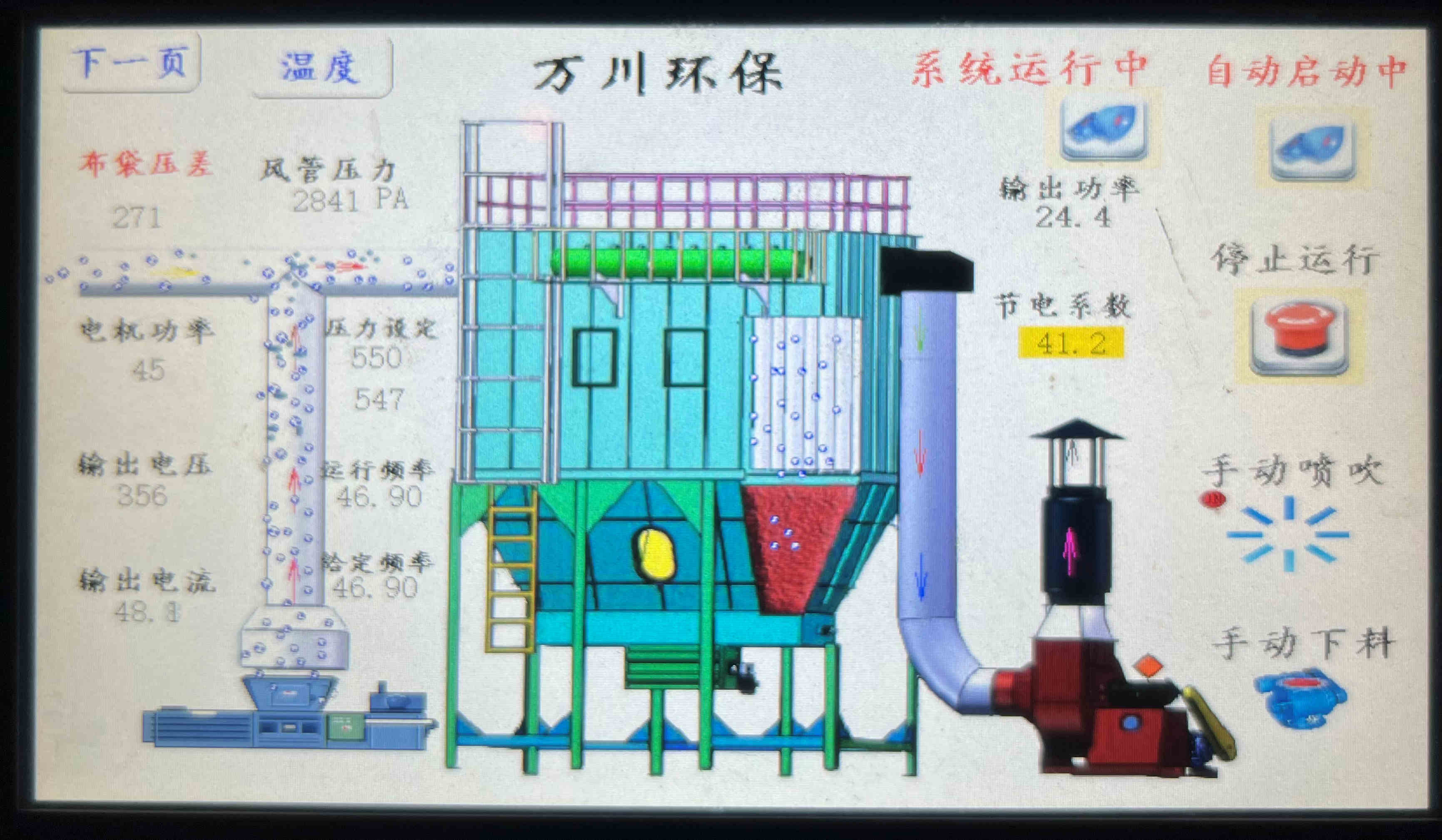 (萬川環(huán)保布袋除塵器配套電控系統(tǒng) 一鍵啟停操作方便快捷,簡(jiǎn)單穩(wěn)定)                            (萬川布袋除塵器配套消防噴淋管路,為安全運(yùn)行保駕護(hù)航)