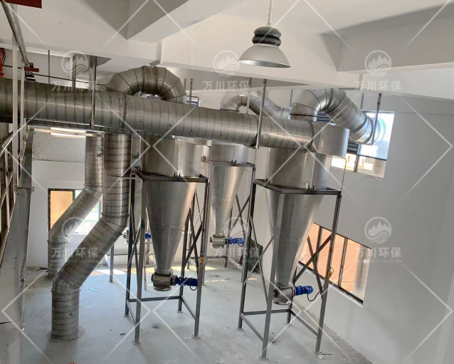 本次根據設計的方案共采用了4套旋風除塵器+脈沖除塵器組合工藝系統